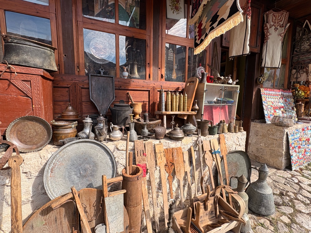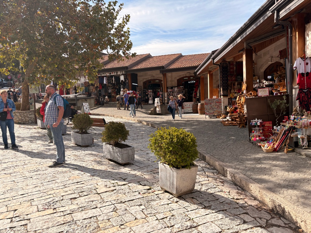 Ein paar Schritte weiter bin ich auch schon an dem Basar. Vorbei an dem Volkshelden und dann geht eine schmale, wunderschöne kleine Gasse den Berg hinab. Das Pflaster besteht aus dicken sehr glatten Steinen und ist nicht so einfach zu laufen. Links und rechts gibt es Shops mit Souveniers. Es ist ziemlich gruselig, außer man findet dieses Zeug sehr schön. Aber trotzdem ist es toll, hier mal durch zu laufen.