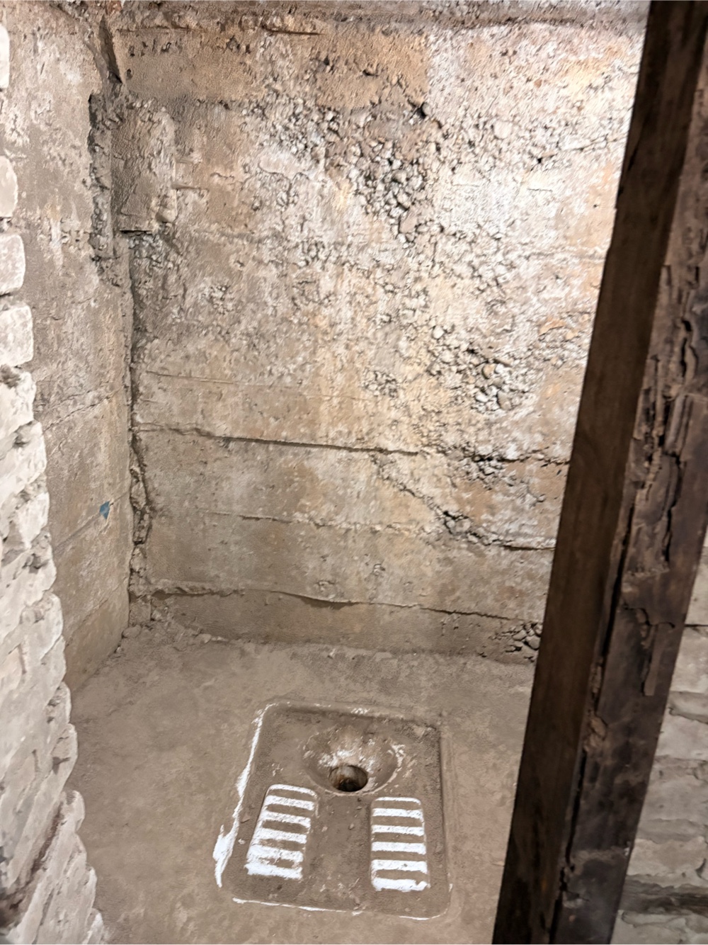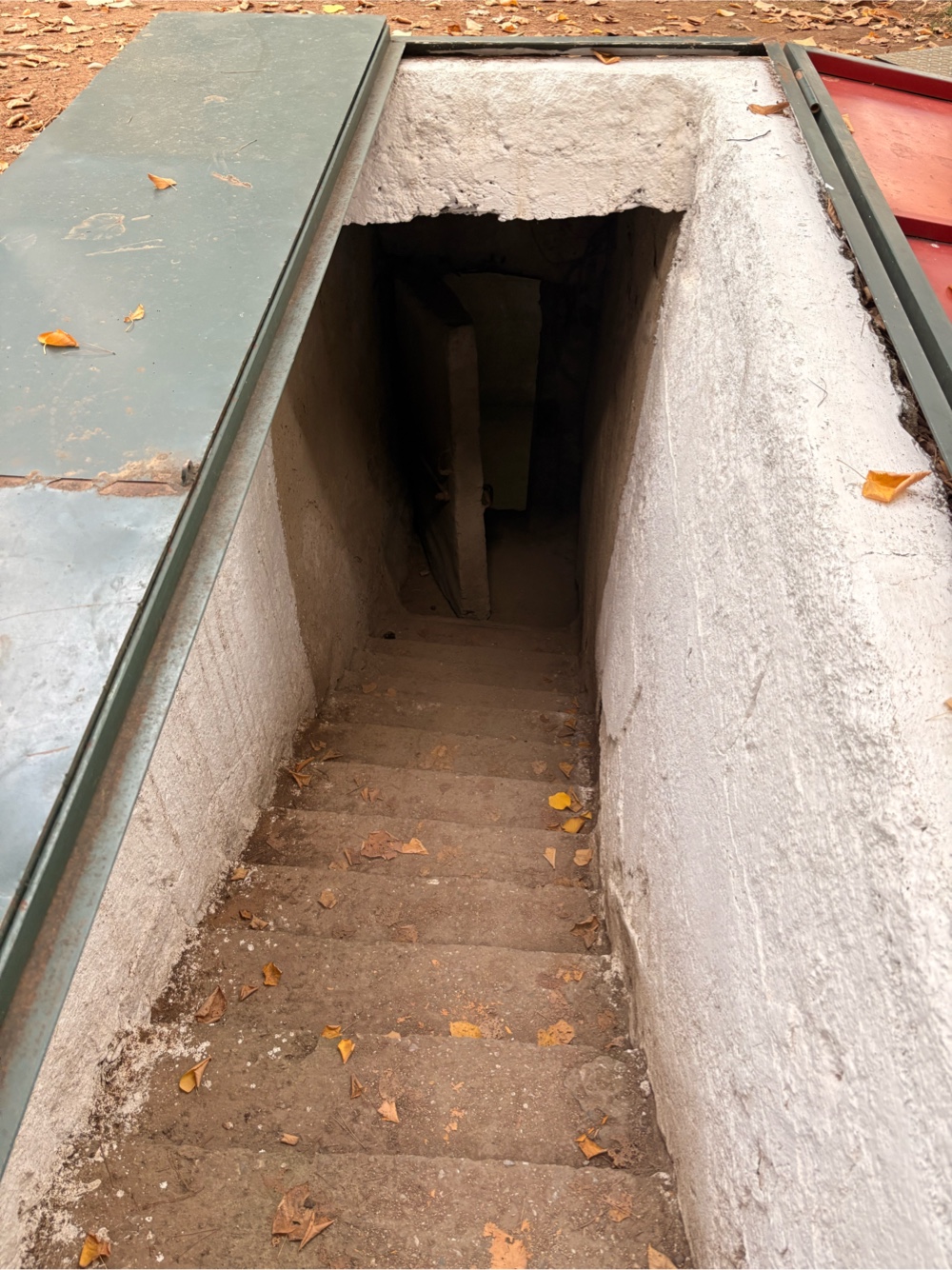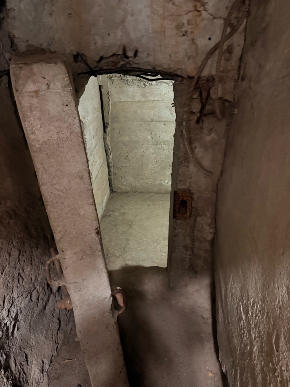 Im Außengelände gab es eine Falltür, und darunter verbirgt sich eine Treppe, die in den Untergrund führte.