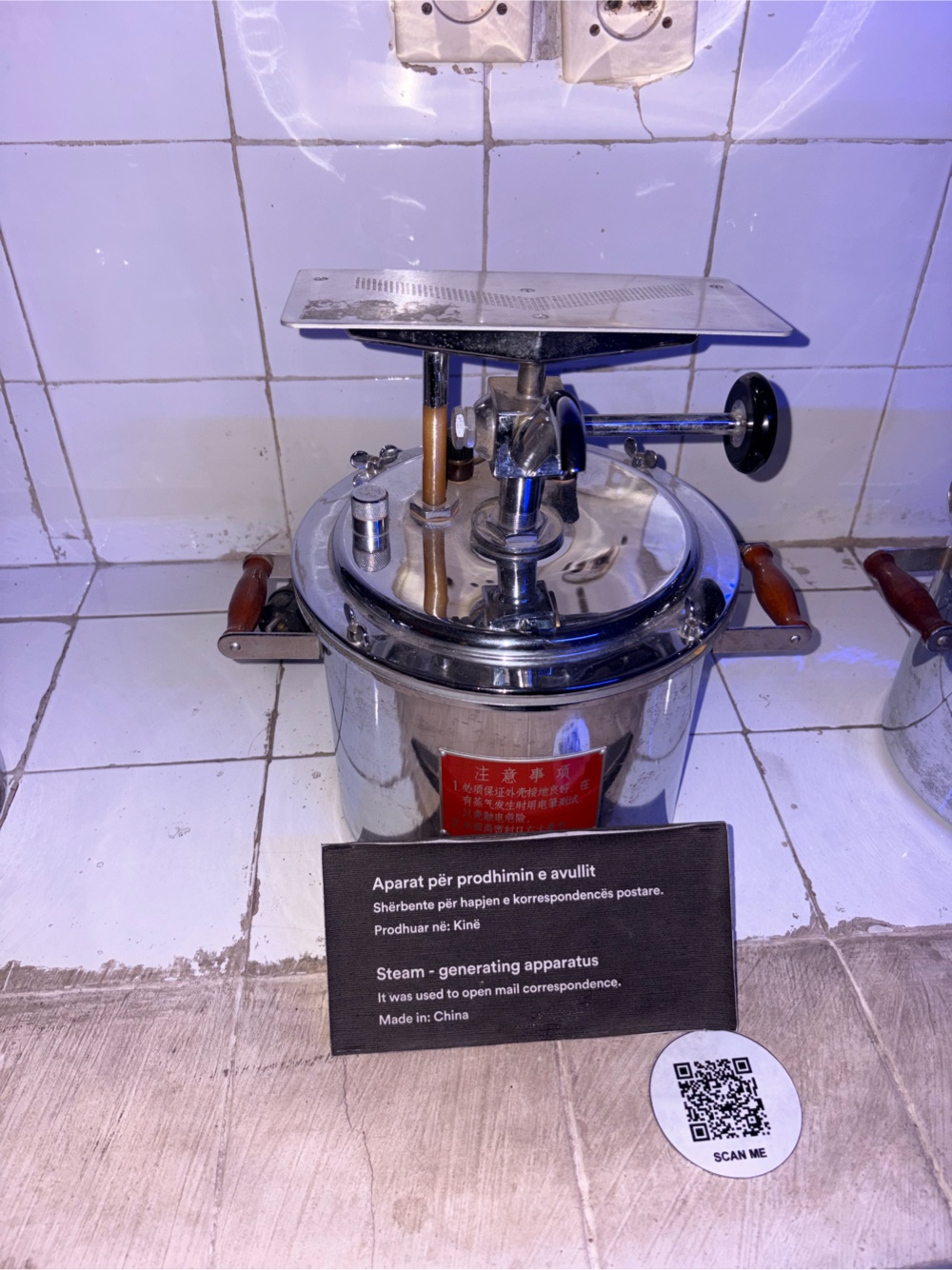 Interessant ist auch ein Stadtplan des Zentrums von Tirana mit den entsprechenden Vorrichtungen, wo man Hotels, in denen Ausländer abstiegen und auch Botschaften anderer Staaten komplett verwanzt hatte.