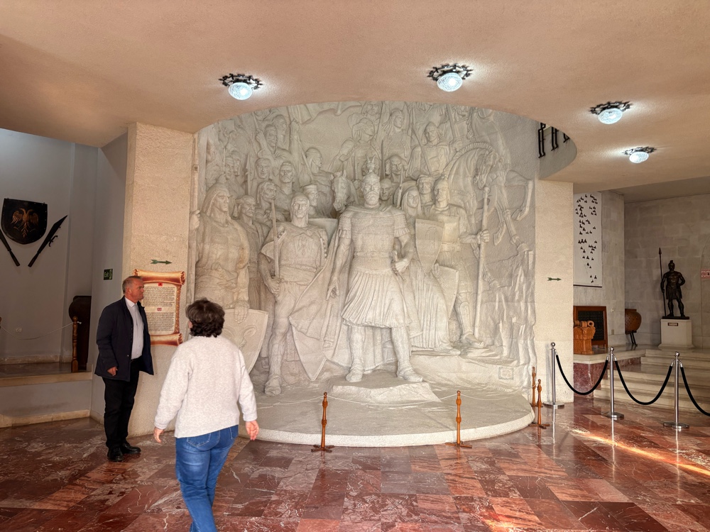 Kruja ist die Geburtsstadt von Skanderbeg, der hiesige Nationalheld, der lange Zeit erbitterten Widerstand gegen die Ottomanen geleistet hat. Das ist zwar 500 Jahre her, aber er ist nicht vergessen. Der große, zentralen Platz in Tirana ist ja auch nach ihm benannt.
