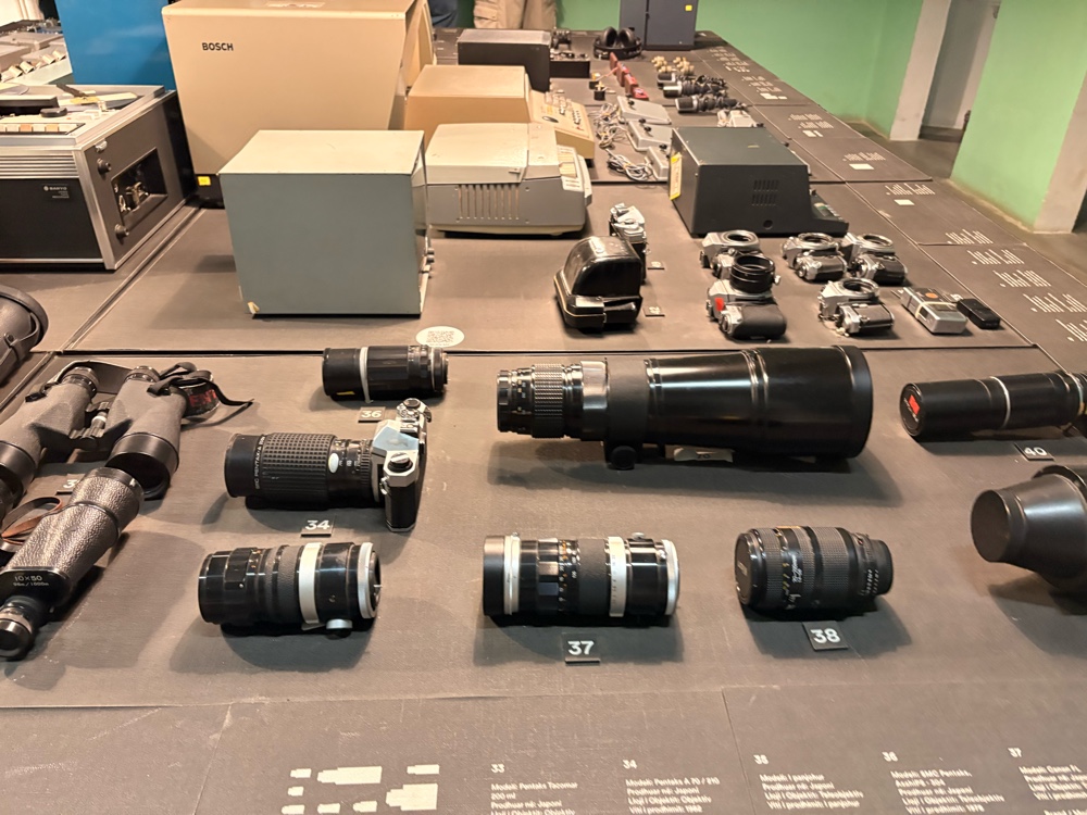 In einem anderen Raum werden unzählige Geräte ausgestellt, mit denen man visuell oder akustisch die Leute abgehört hat. Es sind viele deutsche Produkte dabei zu sehen, Qualität macht sich bezahlt. Interessanterweise gibt es auch eine Ausstellung von Werkzeugen, mit denen man Wände durchlöchert hat, um besser abhören oder spionieren zu können.
