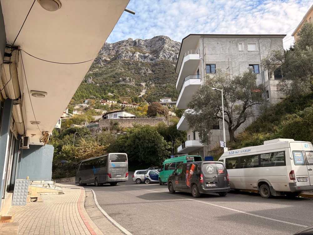 Das reichhaltige Frühstück eröffnete wieder meinem Tag. So lasse ich es mir gefallen! Allerdings scheint das heute der letzte regenfreie Tag zu sein. Der Wetterbericht für hier aber auch für meine nächste Station sieht nicht so toll aus. Aber mal abwarten. Heute Vormittag will ich nach Kruja fahren. Eigentlich wollte ich ein Loblied auf den öffentlichen Nahverkehr hier singen, aber schon gestern Abend habe ich sehr lange auf dem Bus warten müssen und hatte immer den Verdacht, dass zwischendurch mehrere Busse ausgefallen sind. So auch heute, wobei in der morgendlichen Kühle das nicht ganz so angenehm ist, wenn man in weiser Voraussicht nur im T-Shirt rumläuft. Irgendwann brachte mich der Bus zum Terminal D.