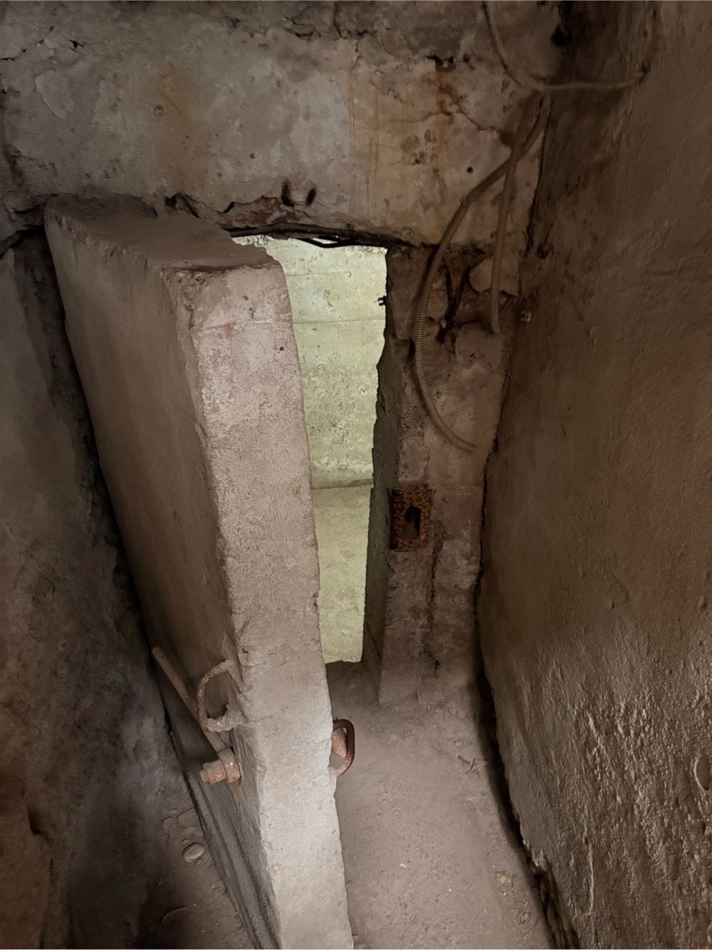 Im Außengelände gab es eine Falltür, und darunter verbirgt sich eine Treppe, die in den Untergrund führte.