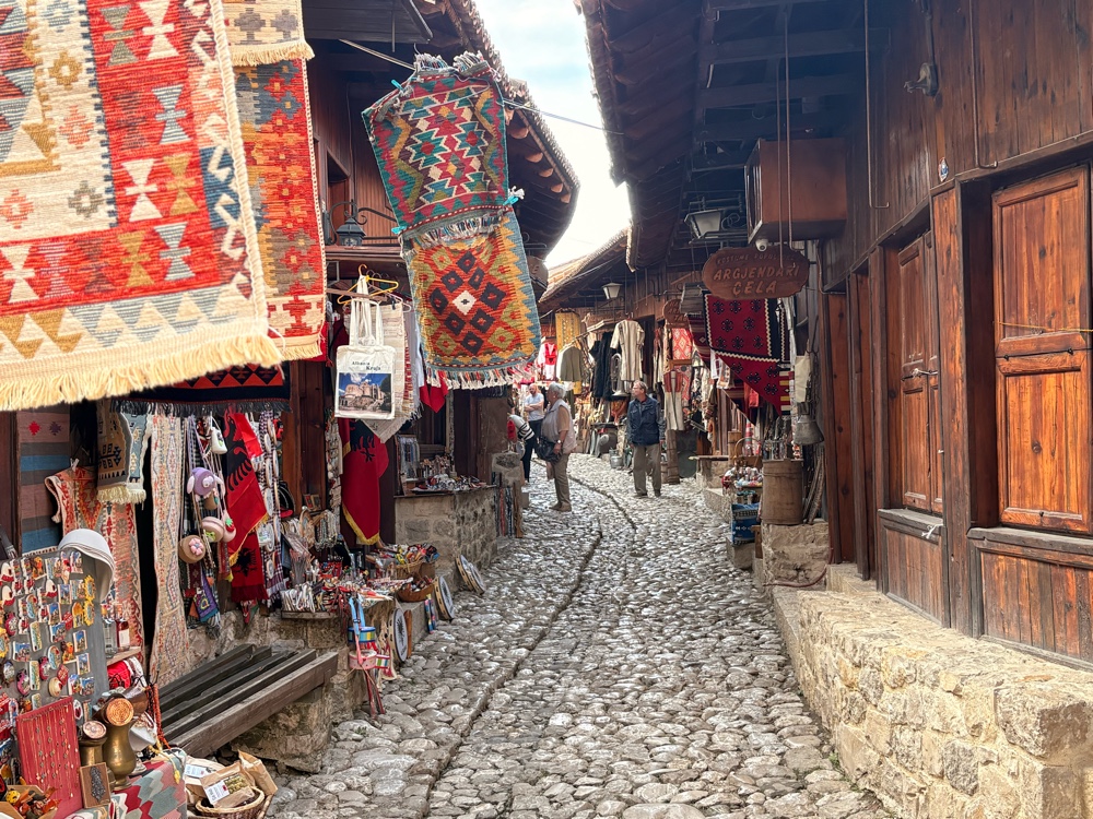 Ein paar Schritte weiter bin ich auch schon an dem Basar. Vorbei an dem Volkshelden und dann geht eine schmale, wunderschöne kleine Gasse den Berg hinab. Das Pflaster besteht aus dicken sehr glatten Steinen und ist nicht so einfach zu laufen. Links und rechts gibt es Shops mit Souveniers. Es ist ziemlich gruselig, außer man findet dieses Zeug sehr schön. Aber trotzdem ist es toll, hier mal durch zu laufen.