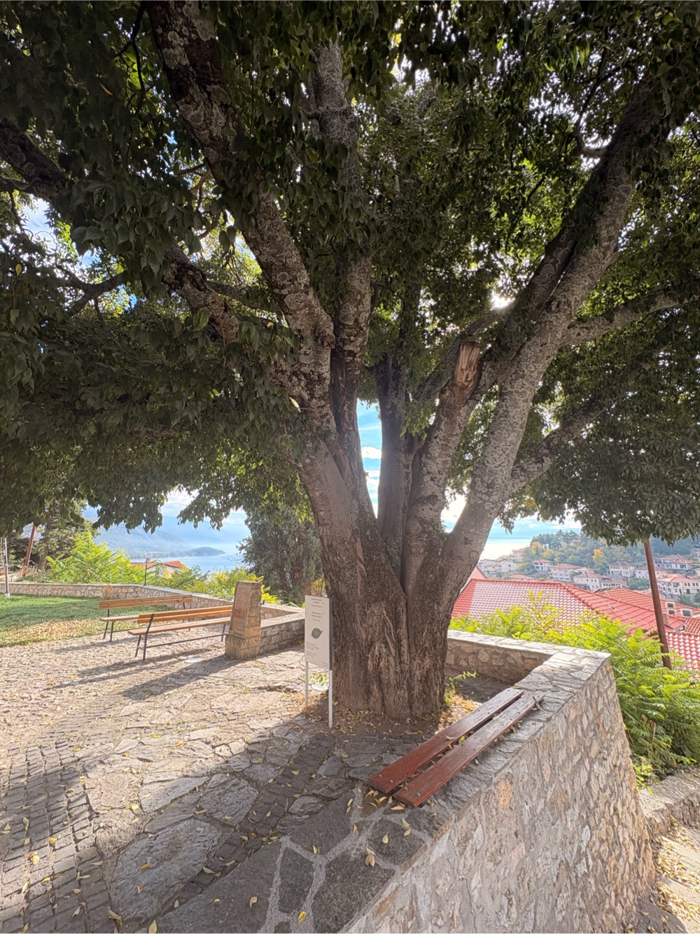 Es gibt verdammt viele Treppen hier! An dem View Point ist dann auch die Kirche der heiligen Maria aus dem 13. Jahrhundert. Ein sehr schönes Gebäude! Direkt neben der Kirche steht auch ein alter Baum. Nach einer Tafel, die davor steht zu urteilen, wurde er am 6. April 1886 gepflanzt und hat sich seitdem ganz brauchbar entwickelt.