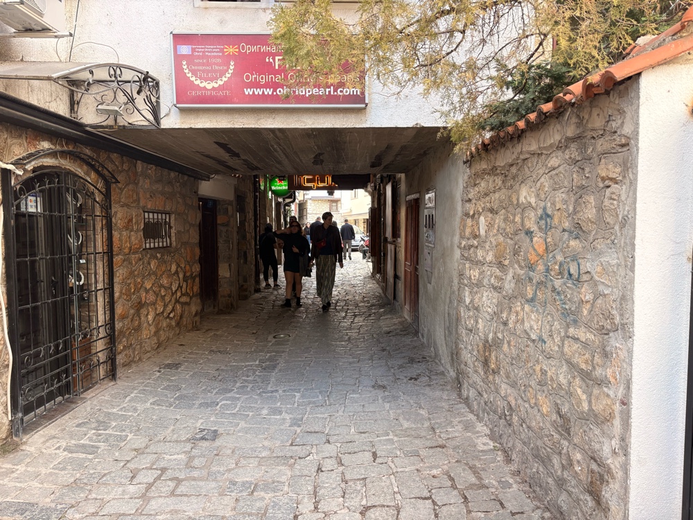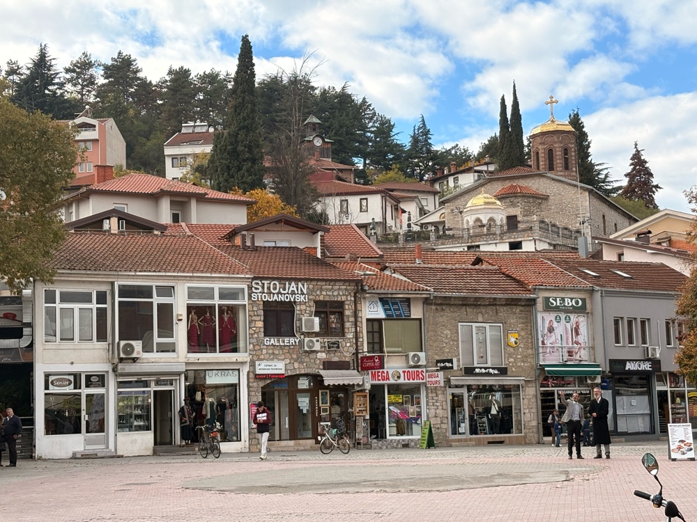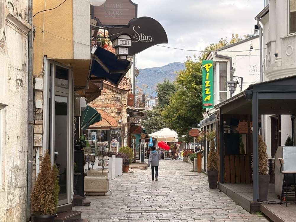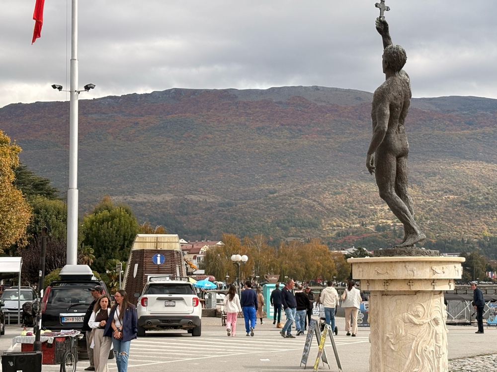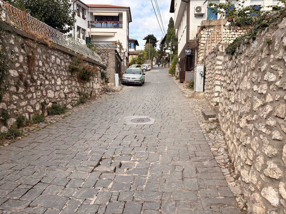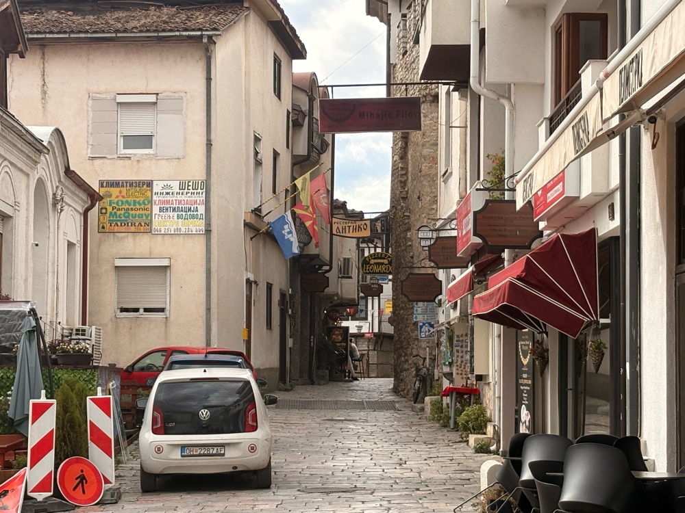 Vom Busbahnhof ist es ein ordentliches Stück, bis ich in die Innenstadt von Ohrid komme. Der Anfang ist ziemlich ernüchternd, offensichtlich eine kleine, mazedonischen Stadt. Dann kommt ein großer Kreisverkehr und hinter dem großen Kreisverkehr.