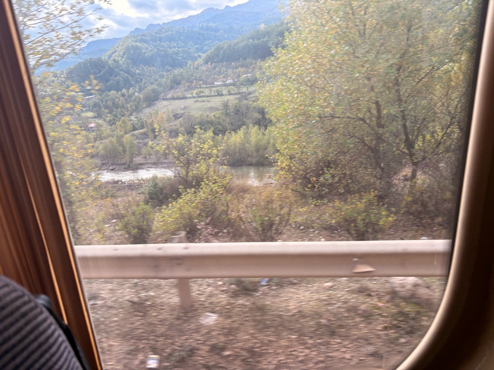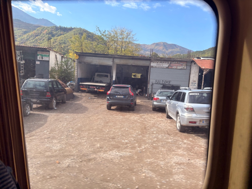 Eine halbe Stunde dauert der Frühsport, dann bin ich am Terminal. Der Bus nach Tirana steht schon da. Ich erwische tatsächlich den vorletzten Platz. Die zwei Mädchen, die nach mir kommen, stehen.
