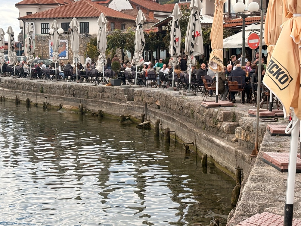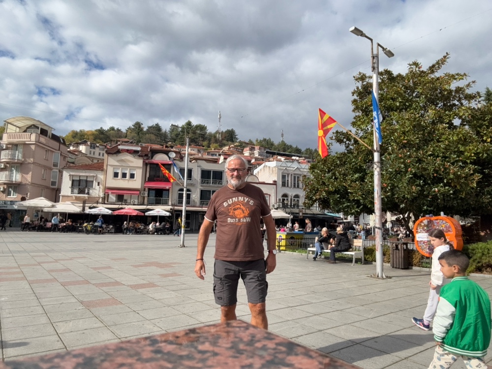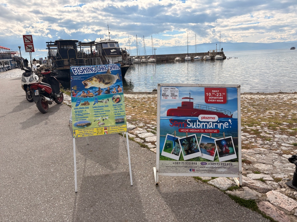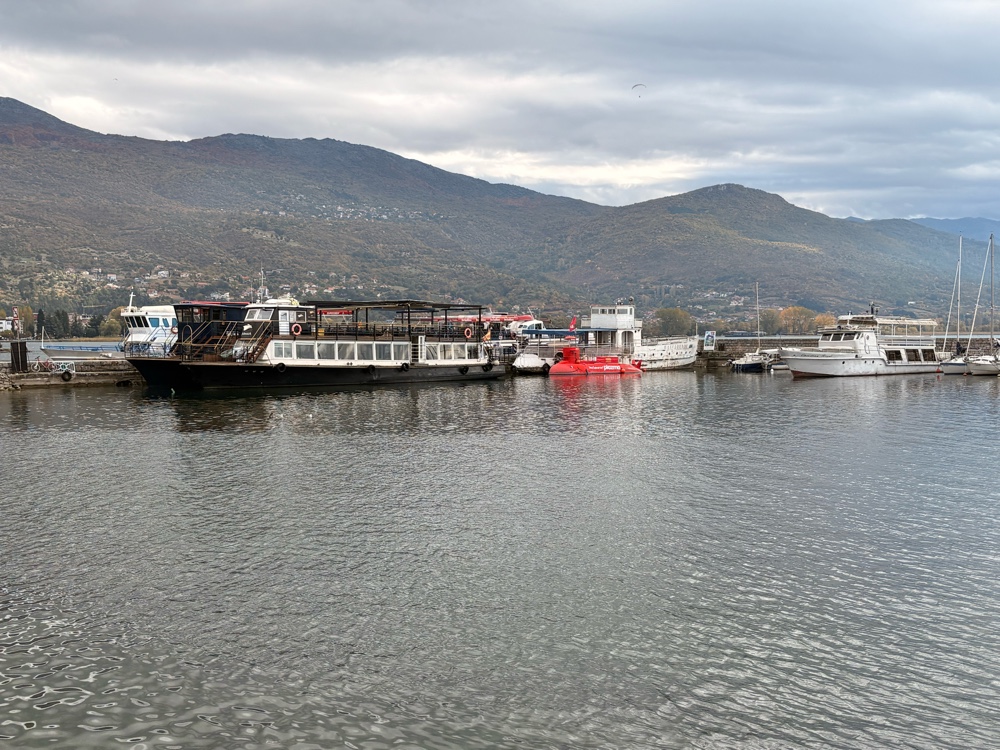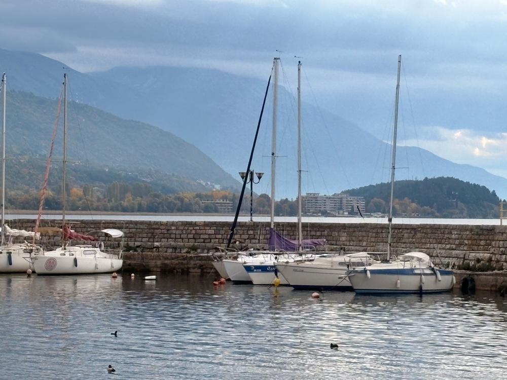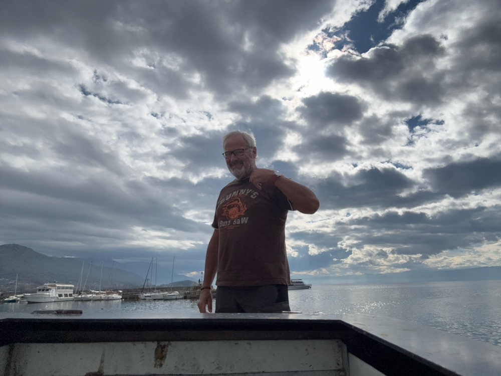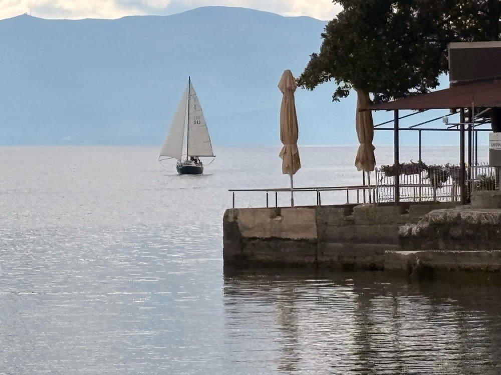 Ja, ich bin ziemlich begeistert von Ohrid. Eigentlich auch von Mazedonien. Die Berge, die herbstlichen Wälder, das alles ist sehr lieblich. Wenn man dann hier an diesem riesigen See ist und die Sonne scheint, macht das definitiv gute Laune.