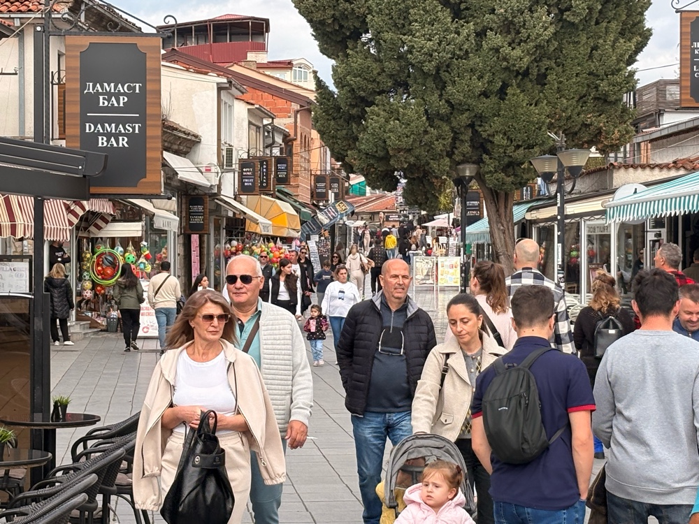 Sie ist nicht so alt wie Kotor oder Mostar, aber auch mit diesen kleinen Gassen und vielen Restaurants und sie ist wunderschön. Es sind viele Leute unterwegs, und ich kann nicht sehen, ob es Touristen sind oder einfach Leute die Zeit haben.