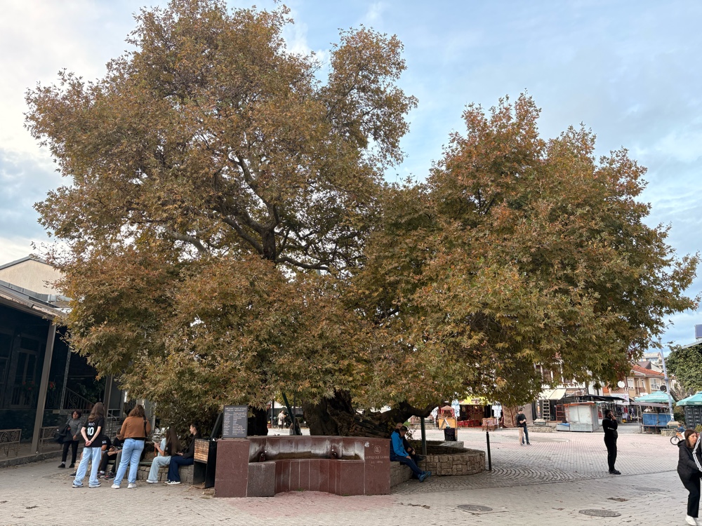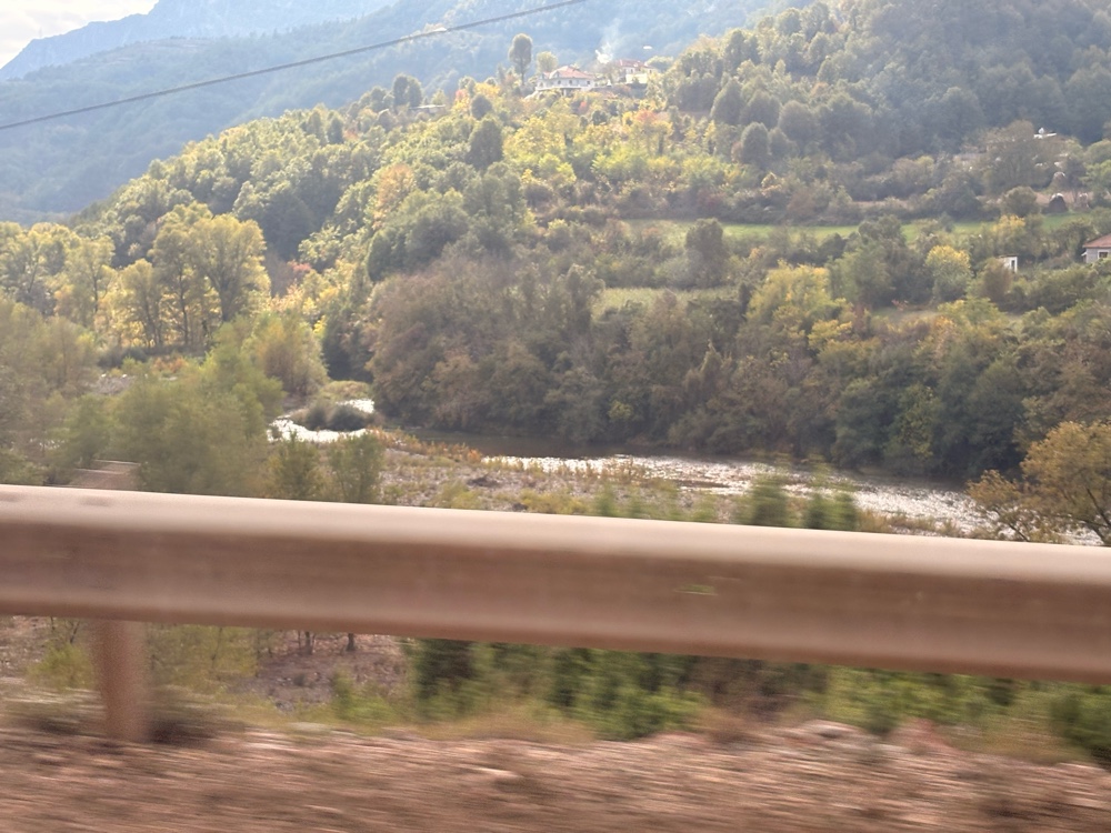 Irgendwann überquerten wir die kleine Grenze nach Nord-Mazedonien und hier wirkt alles schon sehr viel herbstlicher. Die Bäume verfärben sich, es gibt grüne gelbe und rote Blätter und alles sieht wunderschön aus. Von der Grenze aus ist es nicht mehr weit.