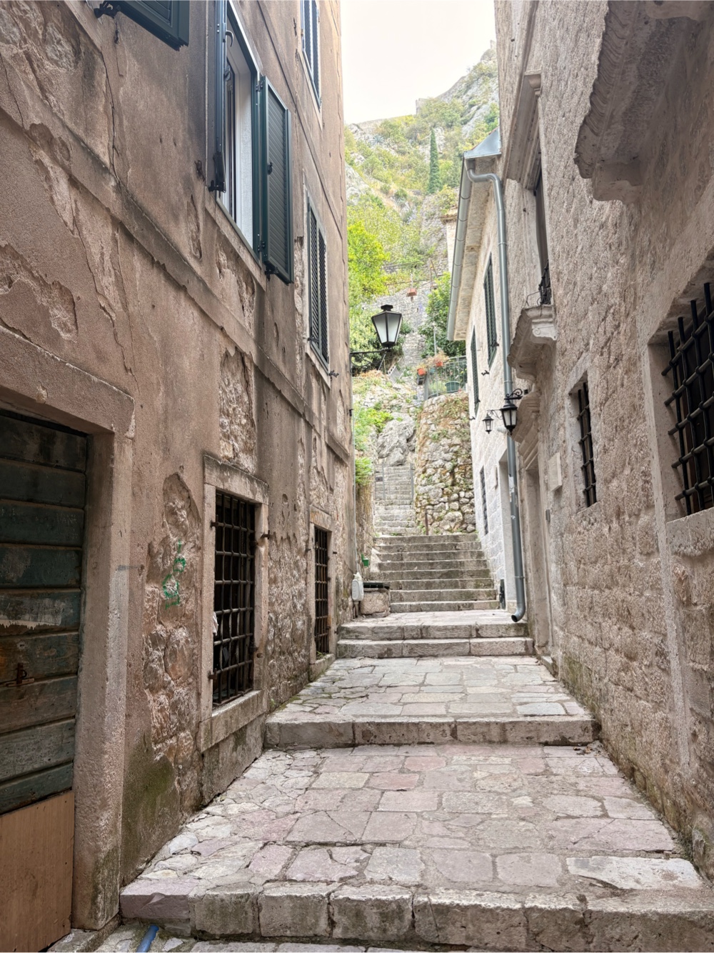 Und dann kamen wir in Kotor an. Ein Blick auf Google Maps sagt sie mir, dass es bis zu meiner Herberge nur 7 Minuten sind. Das fängt ja gut an! Ich habe dieses Mal ein Hostel mit Schlafsaal gebucht. Hier in Kotor ist es einerseits sehr teuer (35€ für ein Bett im Dorm), andererseits war es aber auch sehr schwierig, irgendetwas zu finden, was halbwegs nah an der Altstadt war. Und die Herberge ist mitten in der Altstadt. Wie sagt man bei Immobilien?