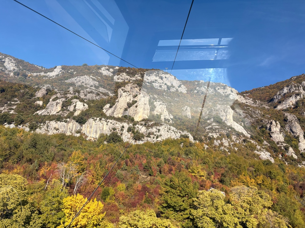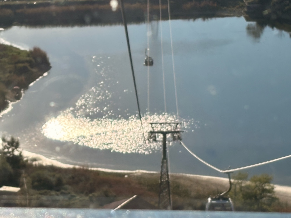 Als ich wieder runter wollte, hoffte ich, wieder so eine Kabine mit nur zwei anderen Leuten zu erwischen, aber es wurde zunehmend voller. Hinter mir rückte eine französische Schulklasse an, und ich machte mich auf eine laute Talfahrt gefasst. Aber nein: die wollten alle zusammen fahren, und so bekam ich einen Gondel nur für mich. Perfekt!