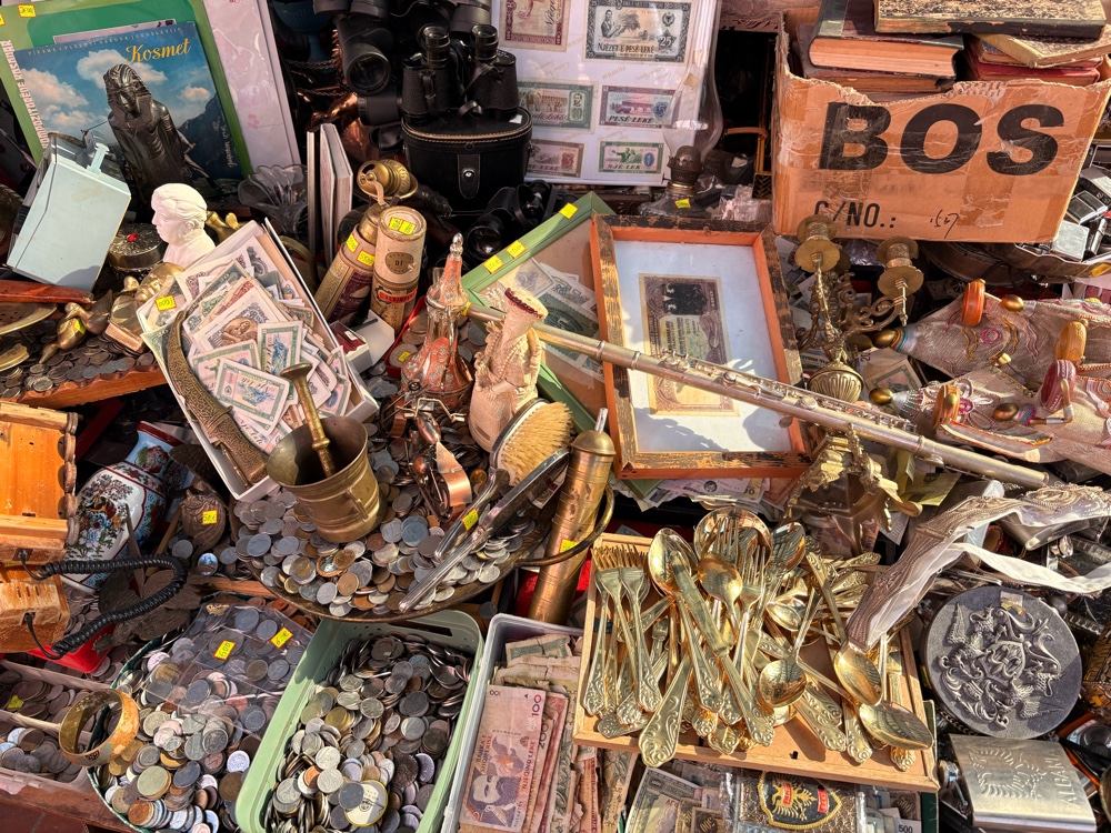 Ich schaue mir auch die Flohmarktartikel und die Antiquitäten etwas genauer an. Die Preise sind eindeutig auf die Touristen ausgerichtet, und sie sind horrend hoch. Es würde durchaus Sinn machen, in Deutschland auf dem Flohmarkt irgendwelches Zeug zusammen zu kaufen und hier anzubieten, die Marge wäre erstaunlich hoch.