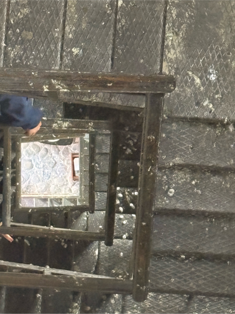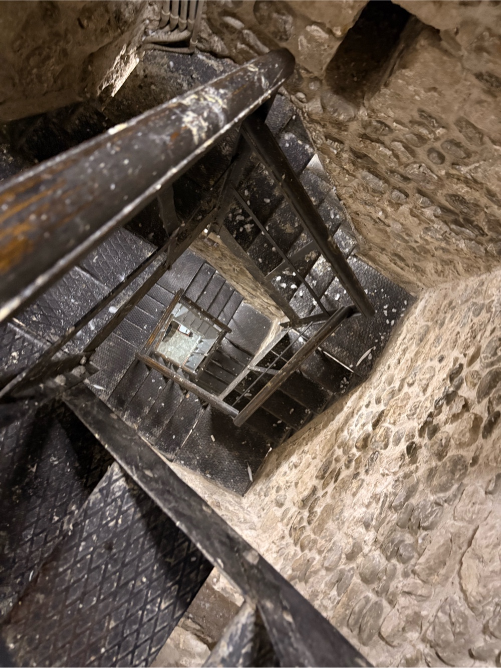 Der Weg runter war dann etwas schwierig, weil es sind genau diese sehr kurzen Treppenstufen, wo ich mit meinen großen Füßen fast nur mit der Hacke auftrete und dann natürlich aufpassen muss, dass ich mir nicht die Wade verletze, wie neulich am Flughafen in Belgrad.