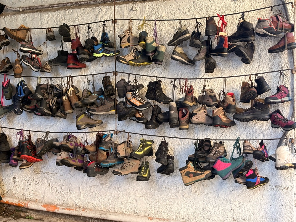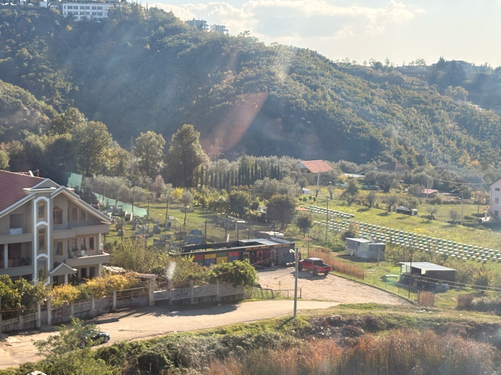 Am Tagesanfang sind es 14°, aber 20° sind angesagt. Ich beginne mit einem albanischen Frühstück, was aber durchaus lecker ist. Ein Ei, eine Art Mürbchen, ein Apfel, ein Burek, etwas Wurst, Käse und Kaffee. Das sollte reichen. Ich bin um 7:30 Uhr aufgestanden, alle anderen schliefen noch und so hatte ich die Dusche für mich und dann auch den Frühstückstisch.