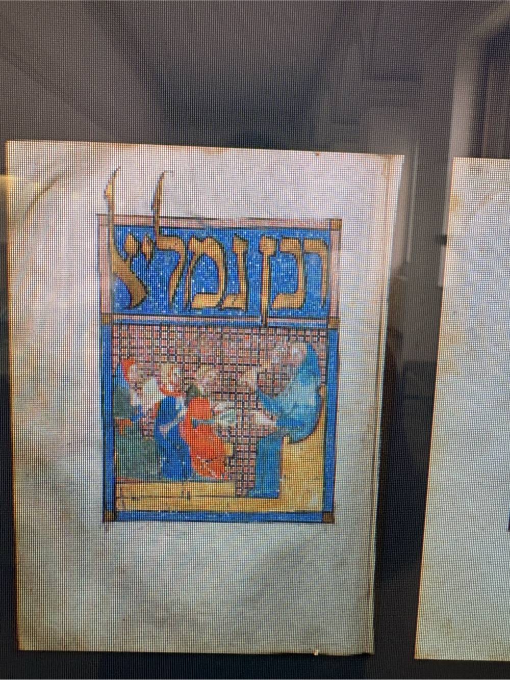 Das hier das wohl interessanteste Stück hier ist die Sarajevo Haggadah. Das ist ein reich illustriertes Manuskript für die jüdische Gemeinde. 1492 nach Sarajevo gebracht, es entstand aber Mitte des 14. Jahrhunderts in Spanien.
