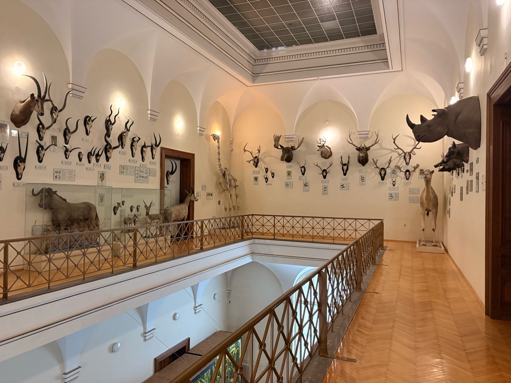 Es sind überwiegend alte, hölzerne Vitrinen, hinter denen die einzelnen Exponate ausgestellt werden. Von diesem Vitrinen stehen unzählige in der Abteilung für Insekten oder auch in der für Mineralien.