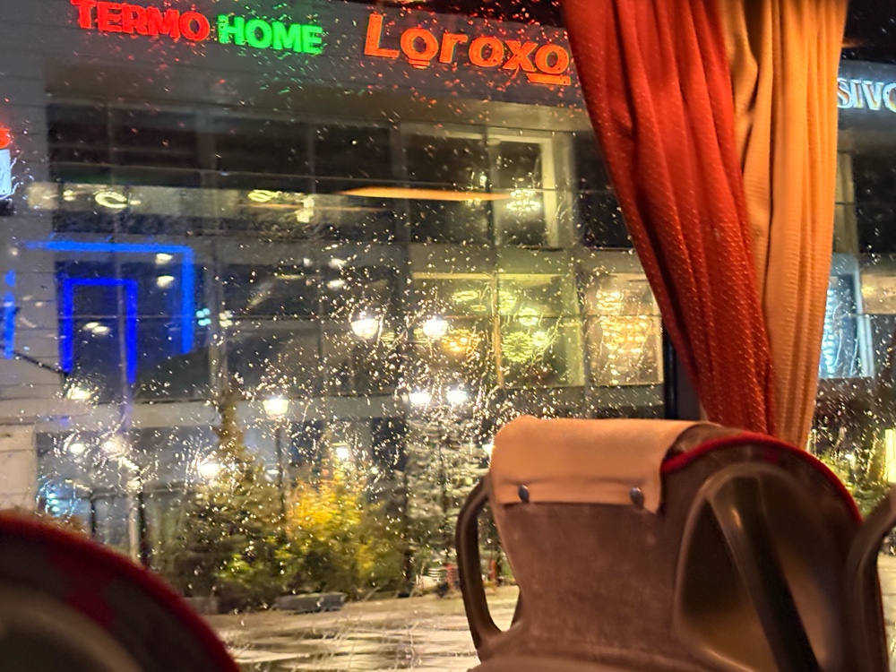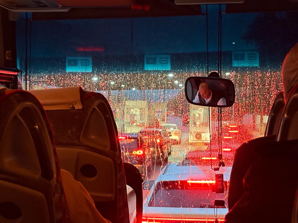 Auf der Fahrt fing es dann wieder an, zu regnen, aber im Bus war es recht gemütlich. Die Wolken hingen sehr tief und es wurde schnell dunkel. 3 Stunden lagen vor mir.